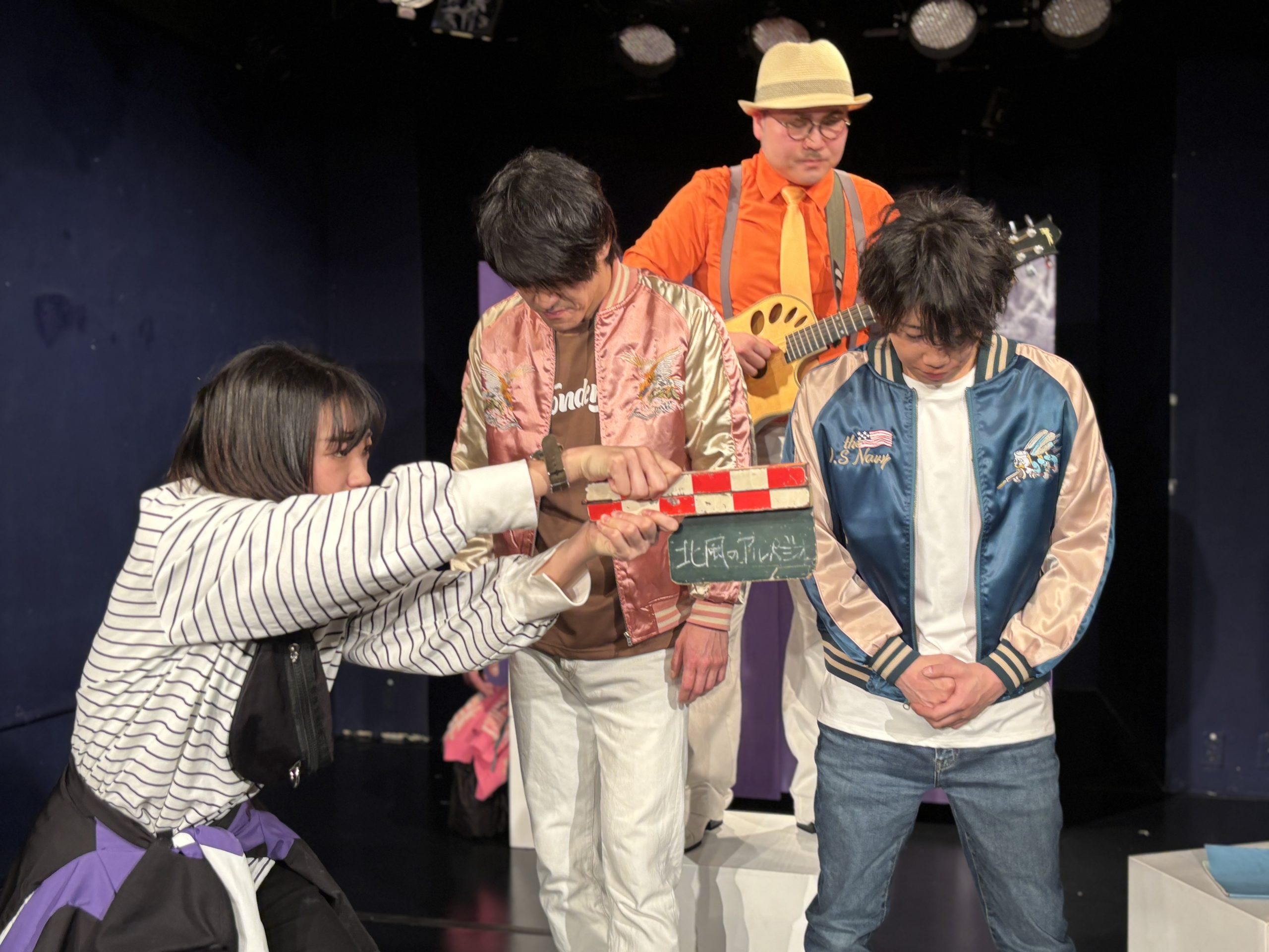 6Cからは高宗歩未とオオダイラ隆生が参戦。高宗はこの演目を外部プロデュースで上演した時に出演していて、それが高宗との最初の出会いでした。そんな縁もあり、難攻不落と言われる第二話の超絶台詞量に挑んでもらおうと第二話フィルムコミッショナー砂田瑞穂にキャスティング。相方となるほりゆりさんはハマり役って感じでしたね〜。予想通りというかお二方とも稽古場で七転八倒してましたね。