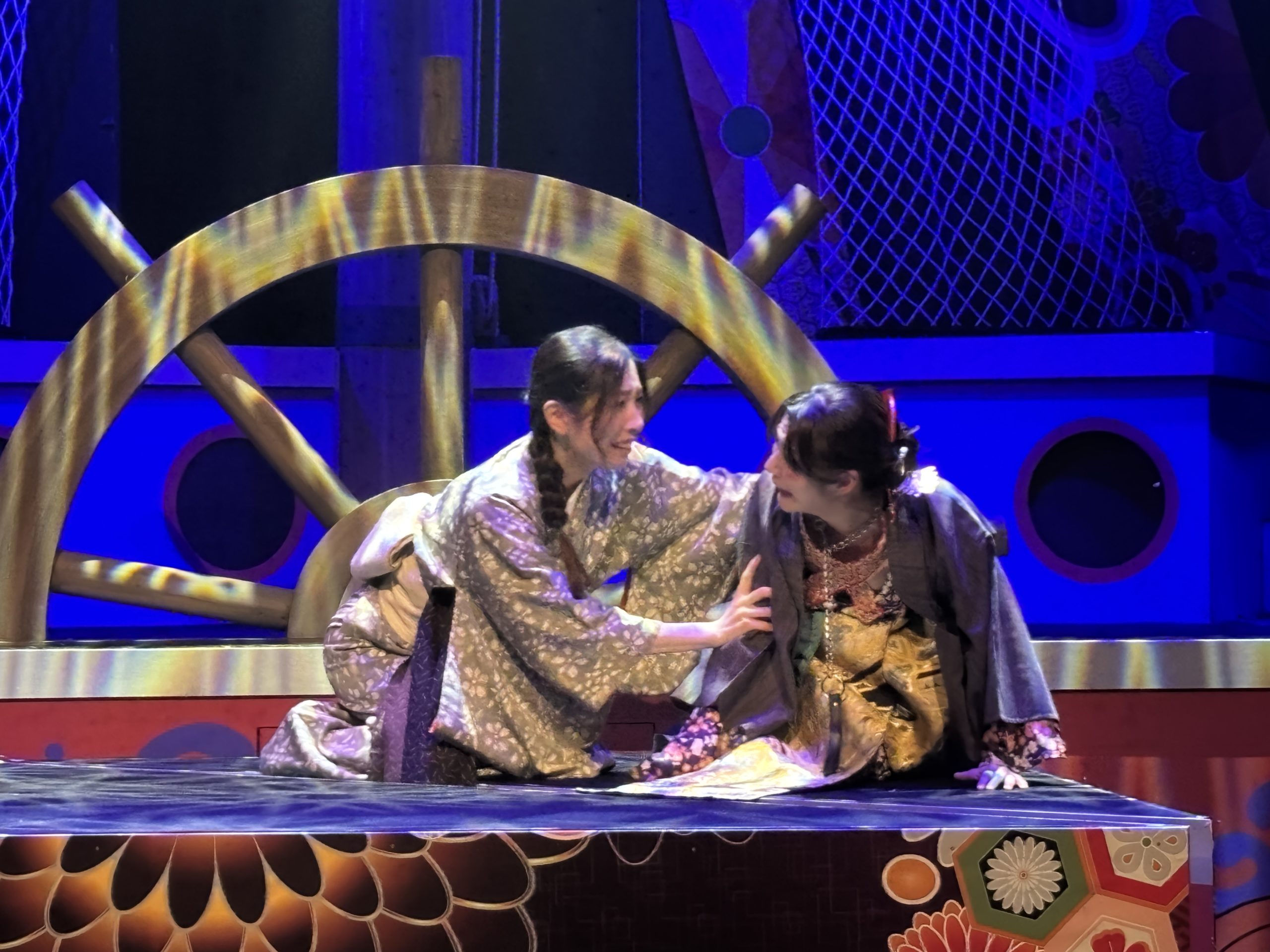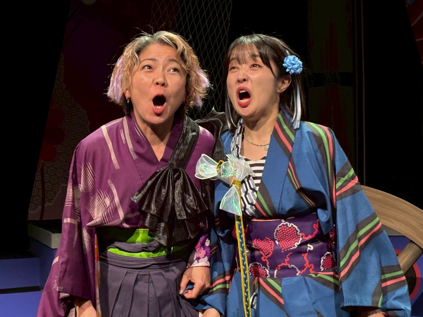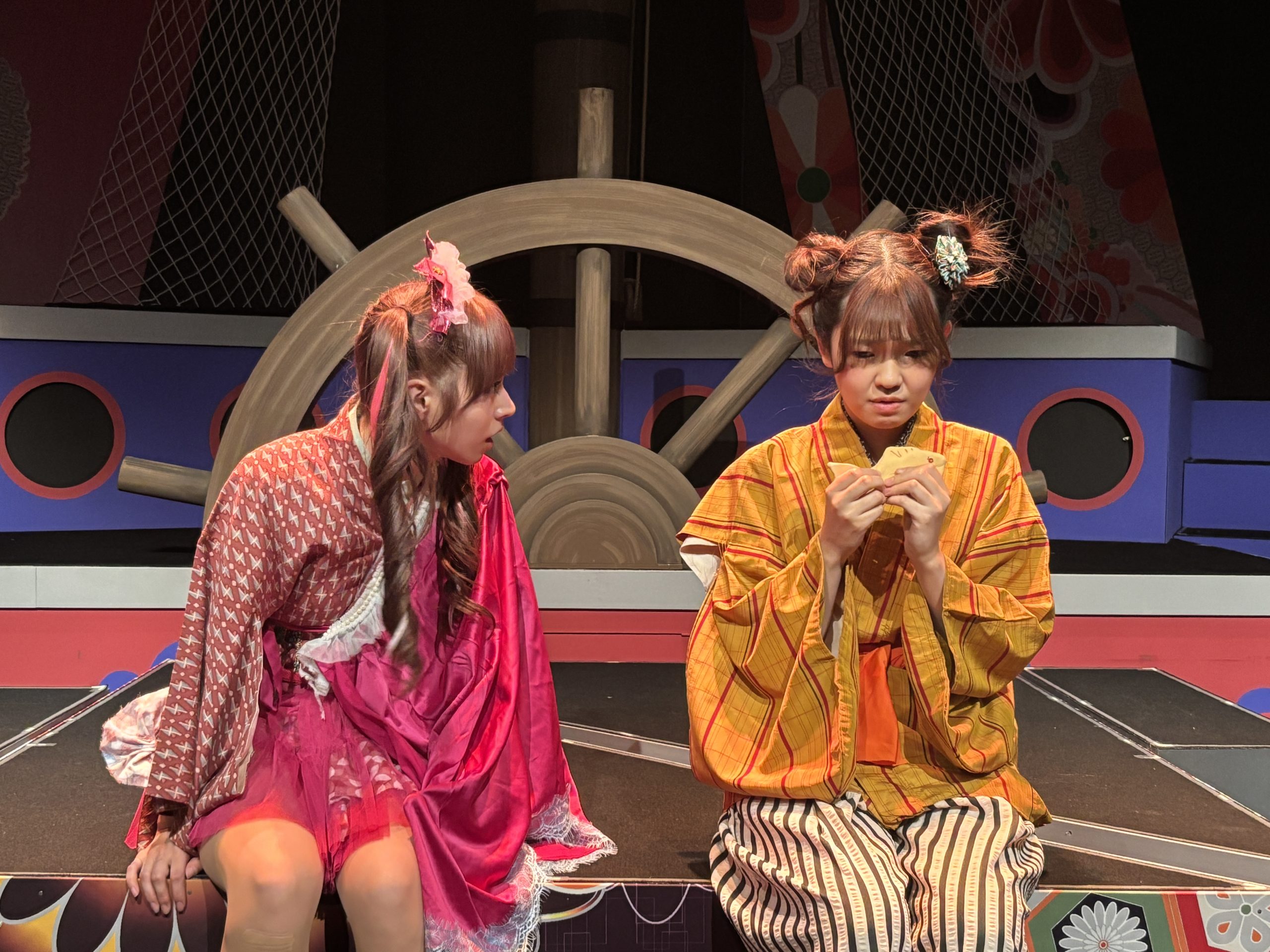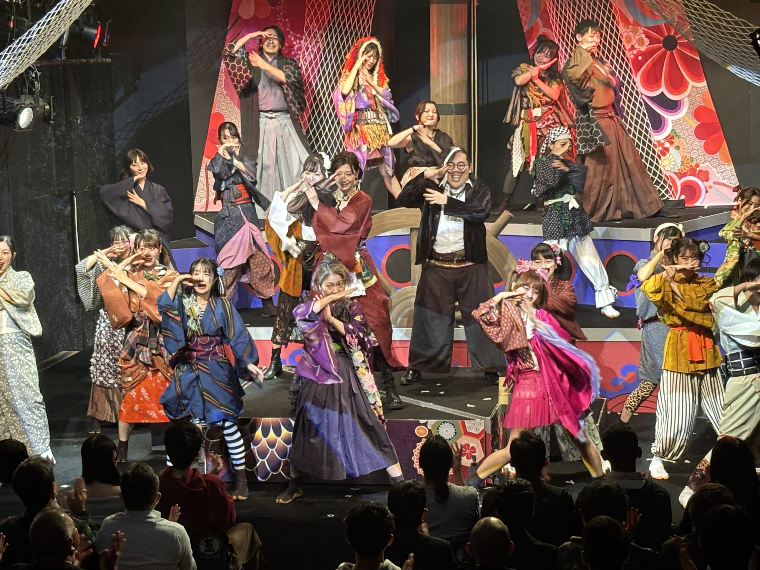 そんな中始まった新アタでしたが、この演目シリーズ4作目ということもあり、稽古はとにかく楽しかった印象。三姉妹の長女亜破(あわ)は宇田川美樹、次女琵輪(びわ)はseason1で琵輪をやり、season3で犯人役をやった高橋明日香、そして毎シーズンキャストが変わっている三女夢或は矢島美音、この3姉妹のチームワークというか、絵の決まり具合は良かったですね。美音君はかなりハマり役でした。対立する黒船チーム、長屋の面々、鍵を握る花街など、華やかなキャスト陣をうまく配置して、ミステリーを構築できたかなと思います。season3で栞菜が演じたFBIみたいな奉行人梵著(ぽんちょ)を森岡悠が引き継いだのですが、このキャラ好きだなー。大好き。season2からの耳かきの寂遜鶴田葵も好きなのですが、今回はちょっと見せ場少なくもったいないなあと反省。シリーズもののむずさね。次回は寂遜多めの展開にしたい笑。夏陽りん子演じた洲多場(すたば)の頭領、洲多場・廉経はいい悪役だったな。そしてりん子さんの格というか、雰囲気がとてもはまりました。あとことり君はいい仕事!